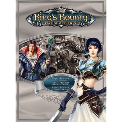 Includes King's Bounty: The Legend, King's Bounty: Armored Princess and its expansion King's Bounty: Crossworlds King's Bounty: The Legend Kings Bounty: The Legend is an adventure game with tactical turn-based battles and role-playing elements. In a fairy tale fantasy world of fearless knights, evil mages, wise kings and beautiful princesses the player controls a hero. Leading their character through the game world, exploring it, commanding armies in battle and accomplishing various quests can mean great reward or huge defeats. Gameplay is divided into two major sections: adventure mode and battle mode. While playing in adventure mode the gamer controls their character in real-time. With several classes available at the start of a new game, the player moves through the adventure map seeking various treasures, fighting monsters and accomplishing quests tasked to him by the local stewards. Once in battle mode the gamer assumes the role of a war chief, leading his troops in tactical turn-based combat. Battles take place on land or sea, in dungeons or castles or even in some items! The hero himself doesn't participate in the combat, but can assist his troops by casting spells or summoning different creatures. King's Bounty: Armored Princess King's Bounty: Armored Princess is a sequel to the critically acclaimed King's Bounty: The Legend. Players will take on the role of Princess Amelie who travels around the world of Teana and searches for the renowned knight, and her mentor, Bill Gilbert. This new world of King's Bounty: Armored Princess is full of mysteries and dangers. The new character, the Princess, will encounter horrible creatures, huge monstrous bosses and a new race, the bloodthirsty Lizards. As in the multi-award winning game on which this sequel is based, the player has many options to resist these new enemies. Various new skills and characteristics of Amelie as well as her chance to fly will help her overcome the hordes attacking the kingdom. The Princess is accompanied by a Pet Dragon, at the very beginning small and amusing, but its abilities develop steadily until it becomes an incredible ally. He will do his best to protect the Princess during the battles, starting with easy blows and treasure hunting and finishing with battle rage and volcano summoning. King's Bounty: Crossworlds New campaign - Arena Champion Mercenary Arthur is hired by some Lew Clissan, and finds himself in the Litan world. According to his contract he has to fight against dreadful creatures at the Arena of the Thousand Emperors to become a champion.